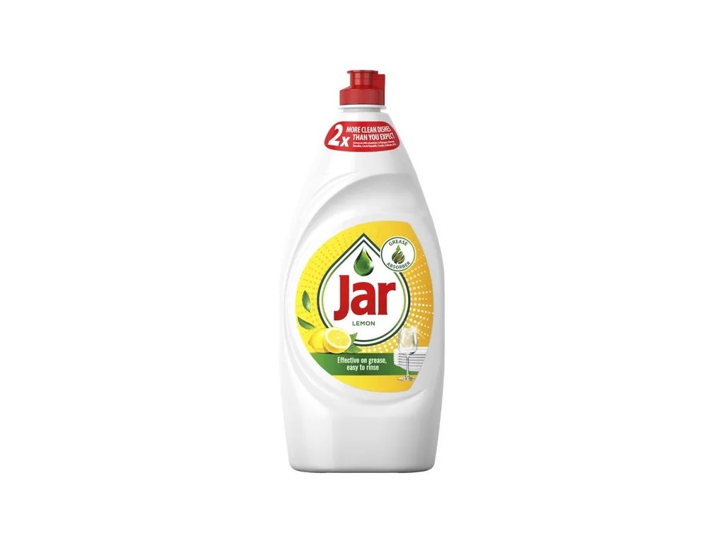 Každá kapka Jaru Lemon má extra dlouho trvající čisticí účinky, které od svého prostředku na mytí nádobí očekáváte. Jeho koncentrované složení si dokáže okamžitě poradit s mastnotou a vaše nádobí bude zářivě čisté. Je účinný u 100 % různých typů mastnoty z jídla. Tento základní tekutý prostředek na mytí nádobí Jar je tak koncentrovaný, že vám ke snadnému umývání nádobí bude stačit jen kapka: žádné namáčení, žádná mastnota, žádný problém.