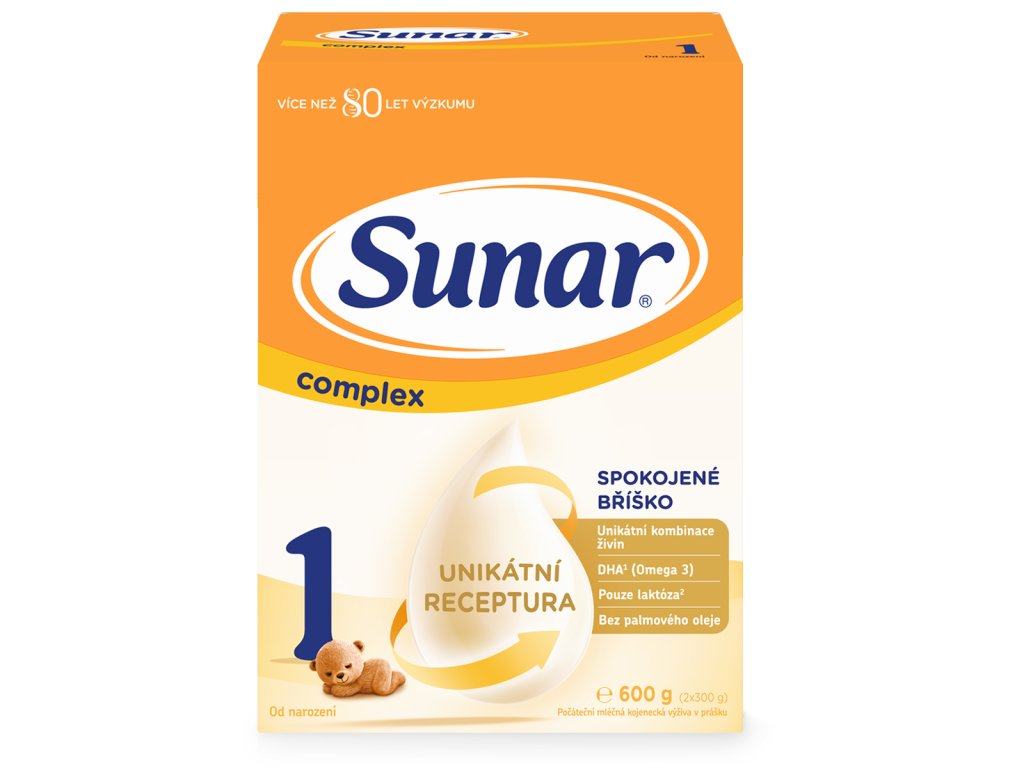 Sunar Complex 1 je počáteční kojenecké mléko z plnotučného mléka, bez palmového oleje. Vyvinuto podle vzoru mateřského mléka. Je určeno pro miminka od narození a obsahuje kombinaci látek přirozeně se vyskytujících v mateřském mléce.
